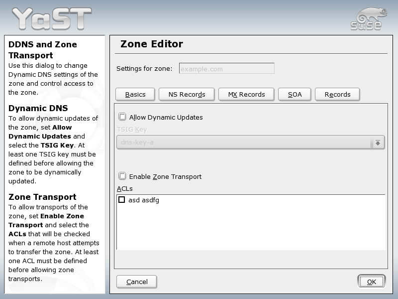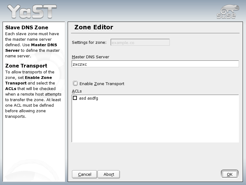 To enable zone transfers, select the corresponding ACLs. ACLs must have been defined already.
