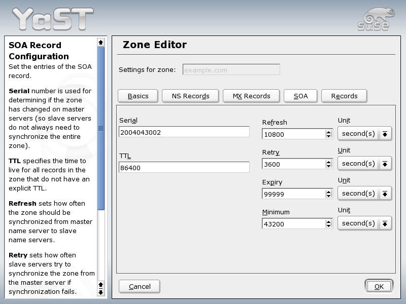 DNS Server: Zone Editor (SOA)