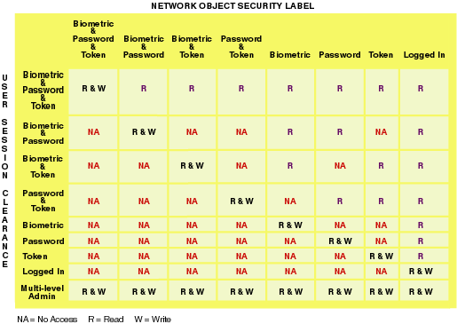 A multi-level clearance is a clearance in which the Read label and the Write label are different. For example, the Multi-Level Administrator clearance is a multi-level clearance and has Biometric and Token and Password for the Read label and Logged In for the Write label. This clearance will allow the user to read all information and to write to all information that is labeled with the default security labels.