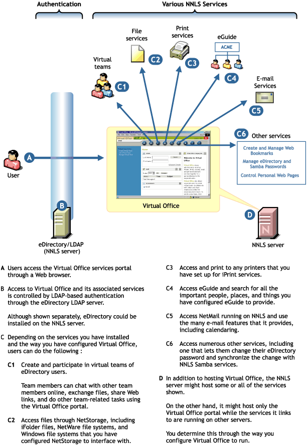 Figure 9 illustrates the NNLS services that Virtual Office makes accessible through a Web browser.