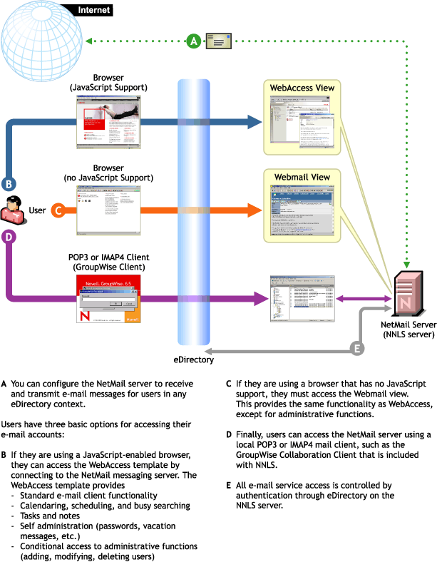 If you already know that you want to provide e-mail services from your NNLS server and you understand how NetMail 3.5 and the Collaboration Client work, skip this overview and continue with Planning Instructions.
