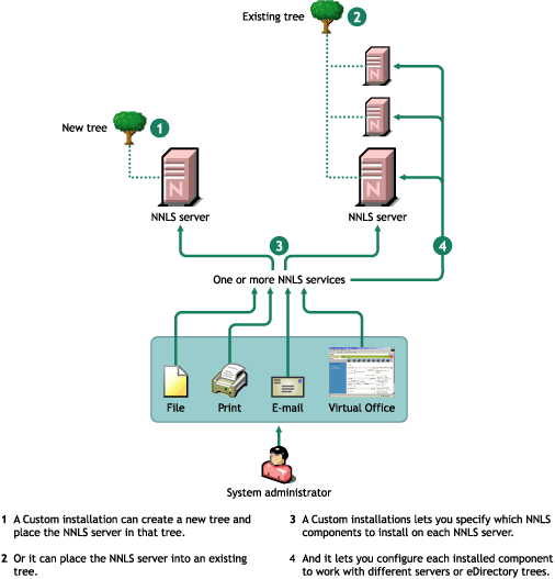 NOTE: Most NNLS product components have cross dependencies to other NNLS support components, such as eDirectory and the Apache server installed with NNLS.