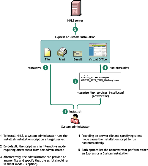 To install NNLS automatically (noninteractively), you must first prepare either an Express or a Custom response file. For more information, see Performing an Interactive Express or Custom Installation.