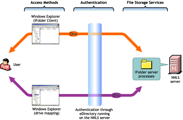 A more detailed overview of iFolder file services on NNLS is found in "Novell iFolder" in the Novell Nterprise Linux Services Overview, Planning, and Implementation Guide.