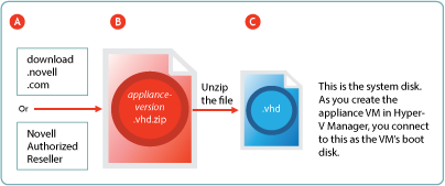 Figure 2-1 Downloading and Preparing Novell Appliances for Hyper-V