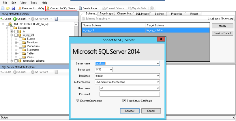 In the MySql Metadata Explorer window, browse to and select your MySQL database.