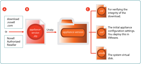 Figure 2-2 Downloading and Preparing Novell Appliances for VMware