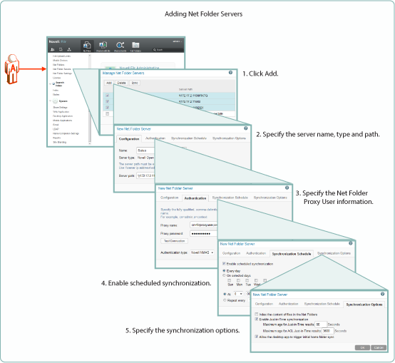 As illustrated in Figure 10-3, adding a Net Folder Server includes the following: