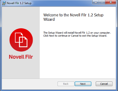 After the download finishes, open the NovellFilrSetup-x86.exe file or the NovellFilrSetup-x64.exefile, depending on whether you have a 32-bit or 64-bit operating system.