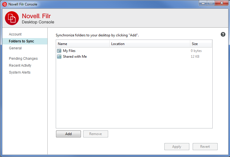 When you first configure the Filr desktop application, you can choose which folders you want to synchronize. My Files and Shared with Me are synchronized by default; Net Folders and Public must be manually configured to synchronize. You can configure folders to be synchronized during the initial configuration or any time after the initial configuration.