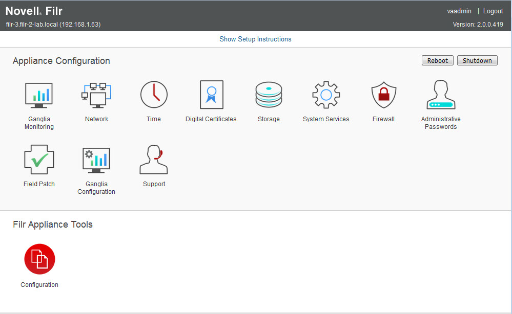 For information about each configuration option, see Configuring and Maintaining the Filr Appliance