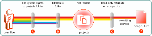 This means that, even though Blue is an Editor in the projects folder, the scope.txt file is off-limits for making any changes. |