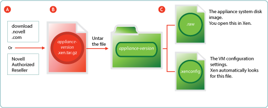 Figure 2-3 Downloading and Preparing Novell Appliances for Xen