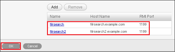 Type an arbitrary name for the second search node, specify its DNS host name, then click OK.