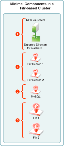 Filr Appliances: By definition, a Filr cluster must contain at least two Filr appliances. More appliances can be included as the service load warrants. |