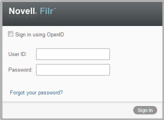In addition to starting Filr from a web browser as discussed in this section, you can also access Filr from your desktop or from a mobile device, as described in Accessing Filr from Your File System and Accessing Filr from a Mobile Device.