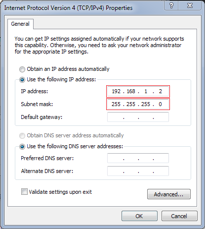 Select , change the field to 192.168.1.0 and field to 255.255.255.0, then click .