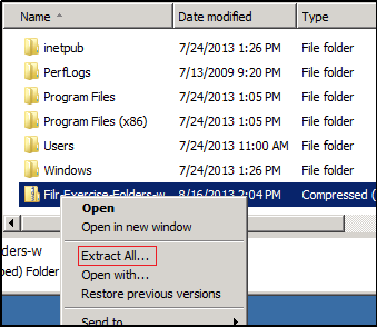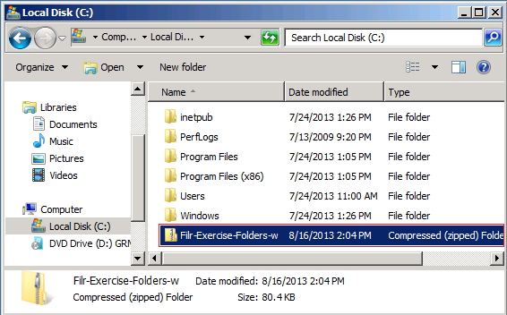 Copy the Hands-on_Filr-windows.zip file that you downloaded in Section 3.0, Downloading Filr Software, to on your Windows server.