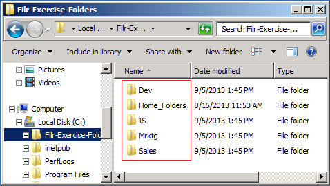 Double click the extracted Filr-Exercise-Folders folder to reveal the five directories used in the exercises that follow.