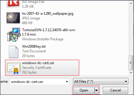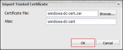 Browse to the certificate file that you saved in Step 1.s, then click .