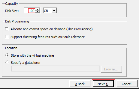 Edit the virtual machine settings and add a 100 GB hard disk.