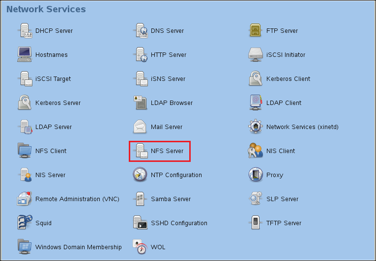 The NFS server in this example leverages a SLES 11 file server that has been installed in VMware Workstation using default settings. You can use the steps that follow to gain hands-on experience with exporting an NFS directory, or for general guidance as you set up the NFS directory in your own lab or production network.