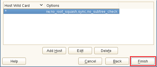 In this small environment, there is no need to create Host Wild Card entries for the Filr appliances that are allowed to mount the exported directory.
