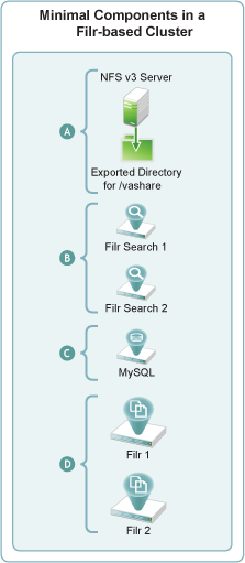 Filr Appliances: By definition, a Filr cluster must contain at least two Filr appliances. More appliances can be included as the service load warrants. |