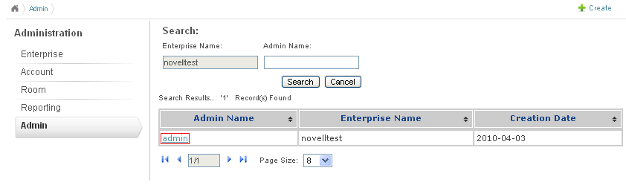 You use the option to search the admin accounts, edit an admin account, and to create and delete admin accounts on your Novell Conferencing server. Multiple admin accounts are supported in Novell Conferencing.