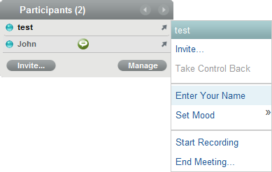 In the meeting console, click your name and select Enter Your Name from the drop-down menu.
