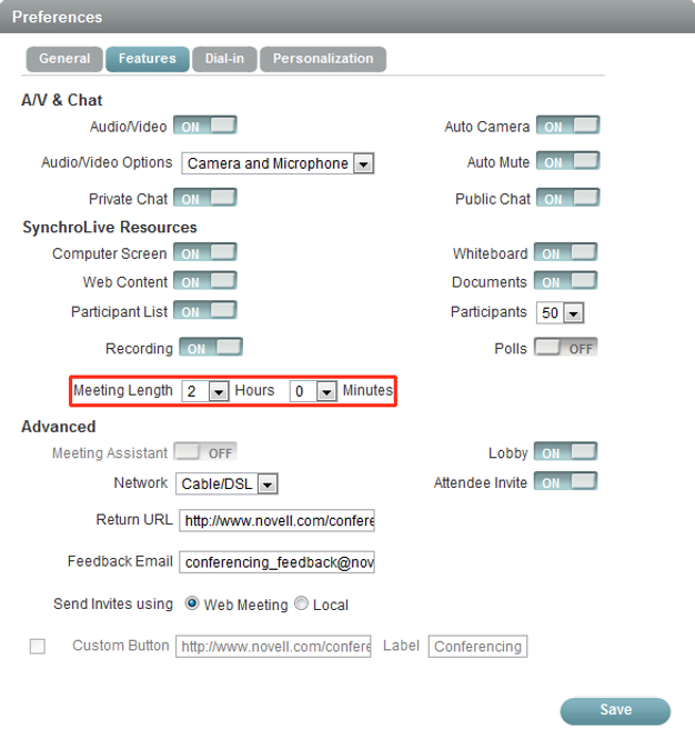 If you want to extend the duration of a meeting after the meeting has started, see Section 3.3, Extending the Duration of the Meeting.