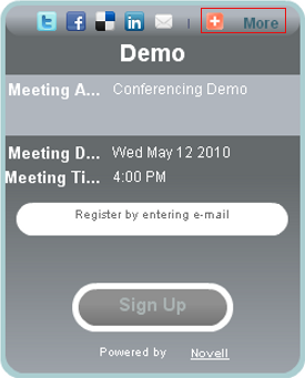 In the Scheduled Meetings dialog box, select the medium you want to use to promote your meeting. The mediums are displayed at the top of the widget. If the medium you desire to use is not displayed, click for a comprehensive list.