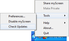 Right-click the myScreen icon in the notification area, then click > .