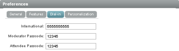 If you have a conferencing number where attendees can dial in for teleconferencing, the number and the attendee passcode can be displayed in the meeting console for the attendees to see. Using the teleconferencing number allows all attendees to speak, not just those who have access to the A/V broadcaster.