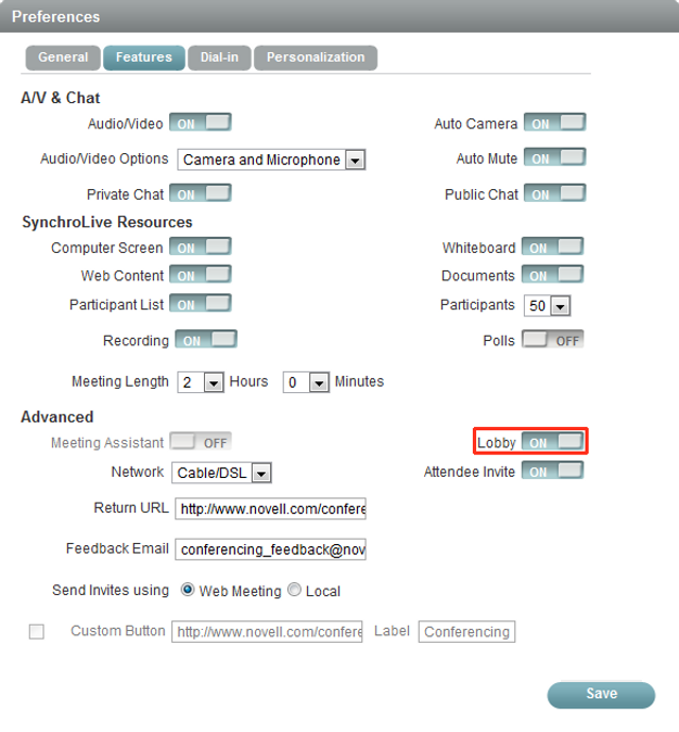 When the host enables the lobby in the Preferences dialog box, it is enabled for all meetings that he or she schedules.