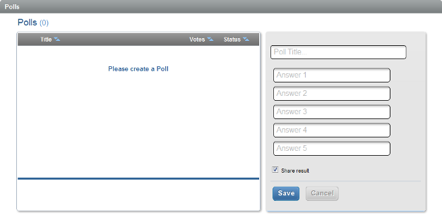 Enter a title (question) for your poll and up to five multiple-choice answers that you want your attendees to choose from.