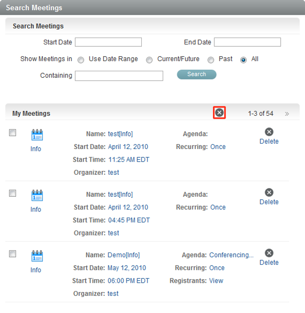 Click the button to delete the selected meetings.