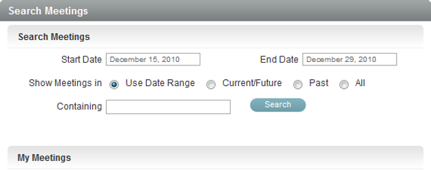 Search: Lets you search for your meetings.