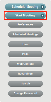Start Meeting: Lets you instantly start a meeting for your default room. For more information about the default rooms, see Section 1.1, Conferencing Rooms.
