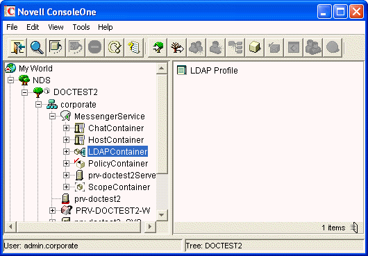 You might want the Messaging Agent to access eDirectory differently on behalf of Messenger users than how the agents access eDirectory to obtain their configuration information. If so, you will create an LDAP Profile object in the LDAP Container object.