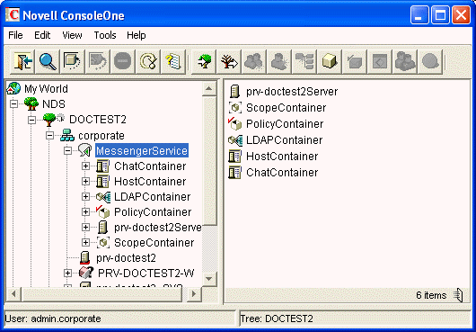 The MessengerService container object provides container objects for a variety of types of Messenger objects. It might be convenient for you to store all Messenger objects under the MessengerService container, but this is not required. You can create Messenger objects elsewhere in the eDirectory tree, if necessary.