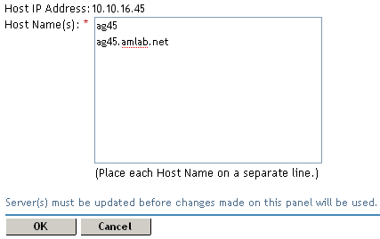 In the text box, specify a name for the host. Place each host name on a separate line. Then click .