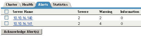 To view information about a particular alert, click the server name. For information about a specific alert, see Section 36.2.1, Reviewing Java Alerts.