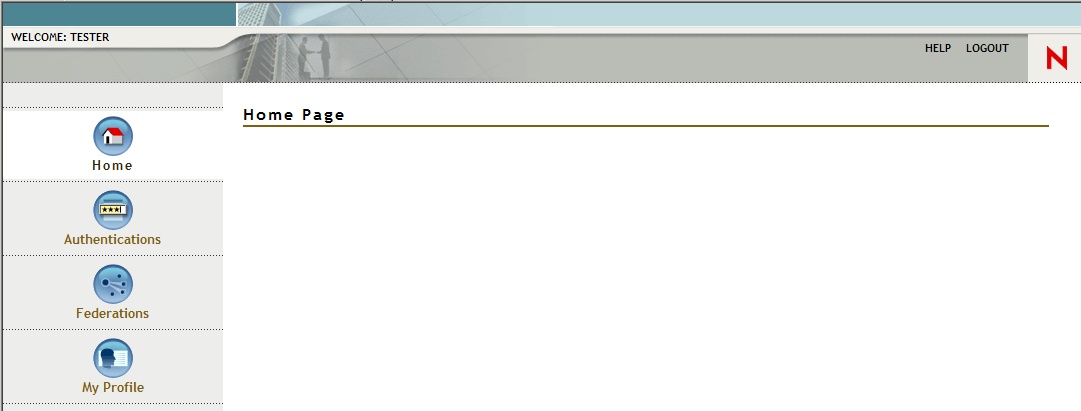 Users can log directly into the Identity Server when they enter the Base URL of the Identity Server in their browsers. For example, if your base URL is http://bfrei.provo.novell.com:8080/nidp, entering this URL prompts the user to authenticate with the credentials required for the default contract. If successful, the user is redirected to /nipd/app and the following page is displayed: