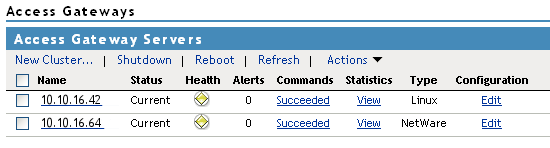 (Optional) To verify the installation of the Access Gateway, log in to Administration Console (see Section 3.2, Logging In to the Administration Console), then click > .
