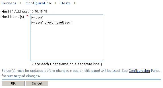 In the text box, specify a name for the host. Place each hostname on a separate line, then click .