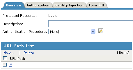 A protected resource configuration specifies the directory (or directories) on the Web server that you want to protect. The protected resource configuration specifies the authorization procedures and the policies that should be used to enforce protection. The authentication procedures and the policies (Authorization, Identity Injection, and Form Fill) enable the single sign-on environment for the user. The type of protections a resource requires depends upon the resource, the Web server, and the conditions you define for the resource.