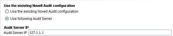 (Conditional) If you do not have the audit server installed, the J2EE installer installs the Audit server for you. Specify the IP address of the Novell Access Manager Administration Console as the .
