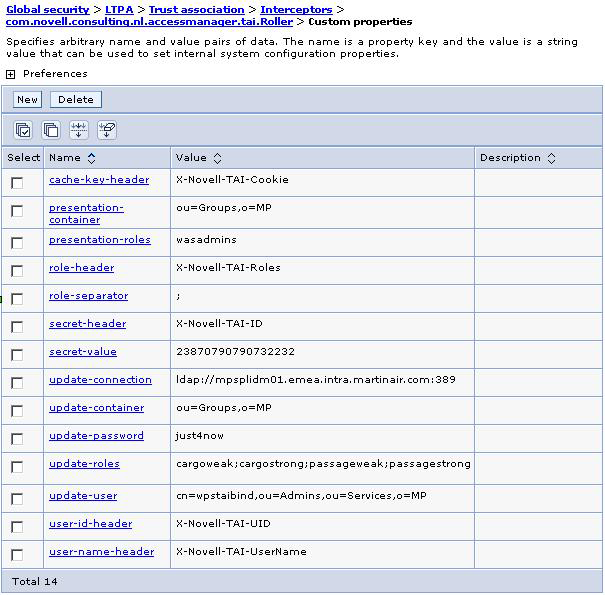 Update-Roles: Names of the roles for which the TAI should prepare corresponding LDAP group objects for direct LDAP readout by Websphere Portal Service.