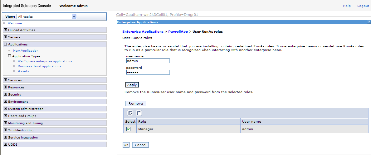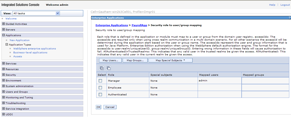 NOTE:Both Section 4.3.2, Configuring Security Role to User/Group Mapping and Section 4.3.3, Configuring for User RunAs Roles are applicable only to sample payroll application.